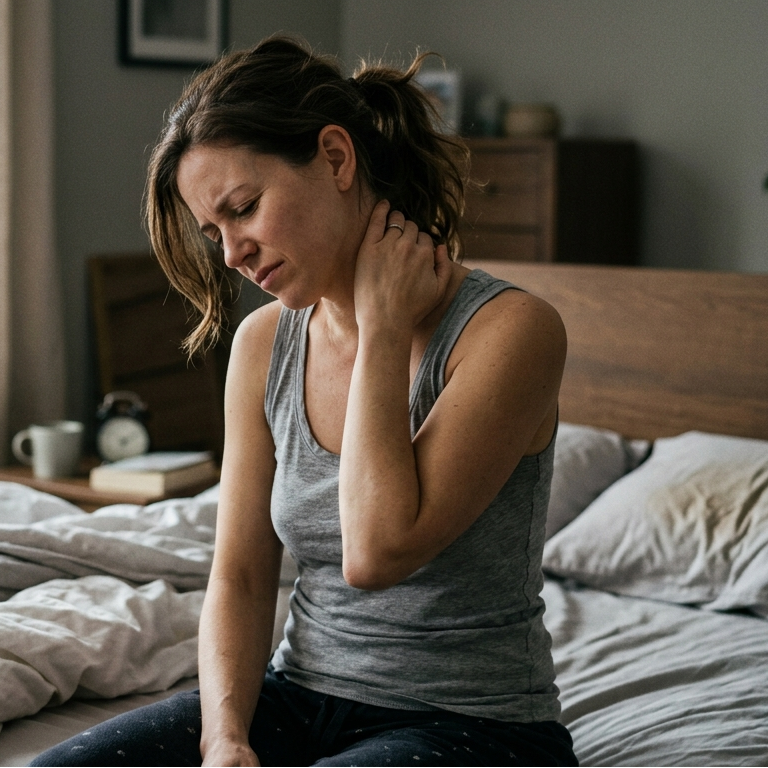 Même après une "bonne nuit". Le temps de faire ta première tasse, tu te masses le cou sans t'en rendre compte.