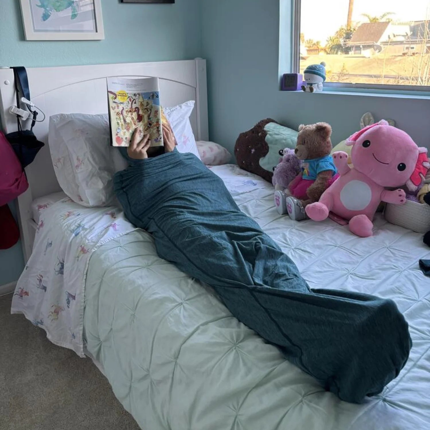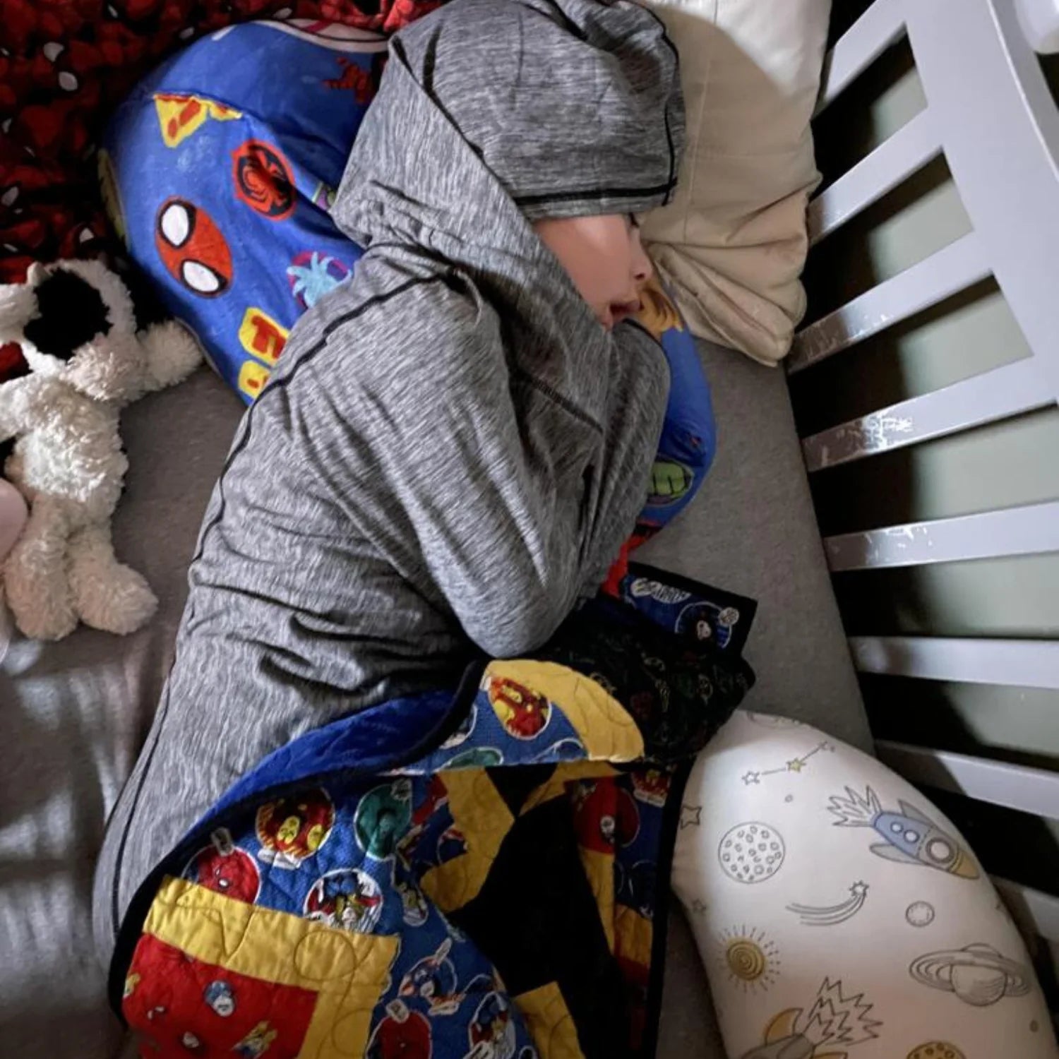 Beaucoup de parents disent que l’enveloppement sensoriel léger aide leur enfant à se réguler et se poser avant dodo.